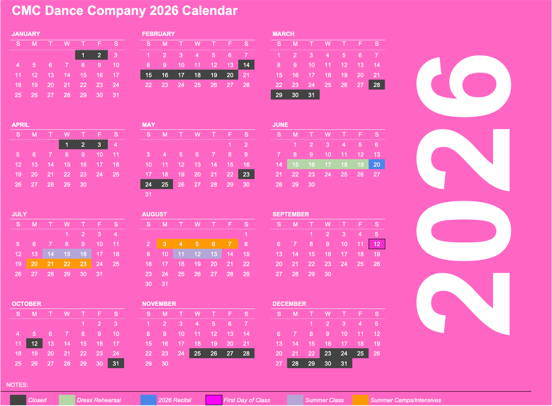 CMC DANCE COMPANY 2025-2026 CLOSING & DELAY CALENDAR